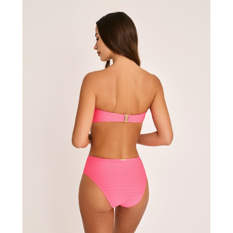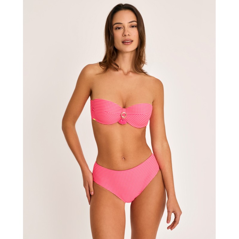 Top de biquíni cai-cai com armação e bojo. Com alças amovíveis. Esta peça, com o seu tom luminoso e delicado design entrançado, realça a silhueta de forma subtil e elegante, enquanto o acessório embutido acrescenta um toque de originalidade ao look.