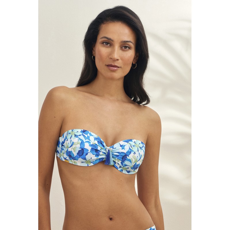 Top de bikini bandeau com aro e copa. Com alças removíveis. Sua estampa floral a torna uma peça alegre e jovem.