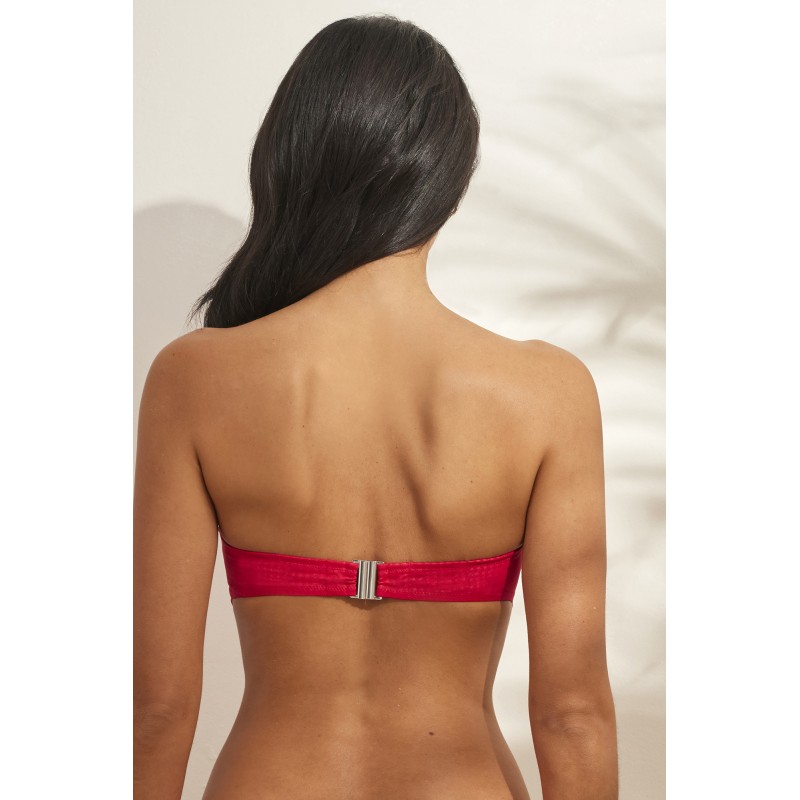 Top de bikini bandeau com aro e copa. Com um detalhe que agrega elegância a esta peça e a torna uma alternativa ideal entre seus trajes de banho.