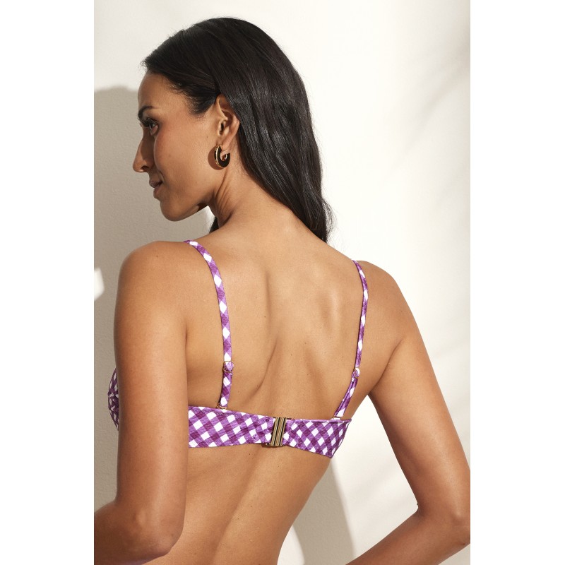 Top de bikini bandeau com aro e copa. Com um estampado muito estético e jovem que realçará a sua figura. Uma peça perfeita para este verão.