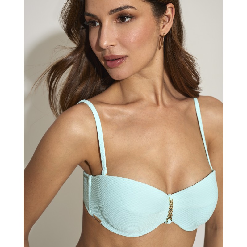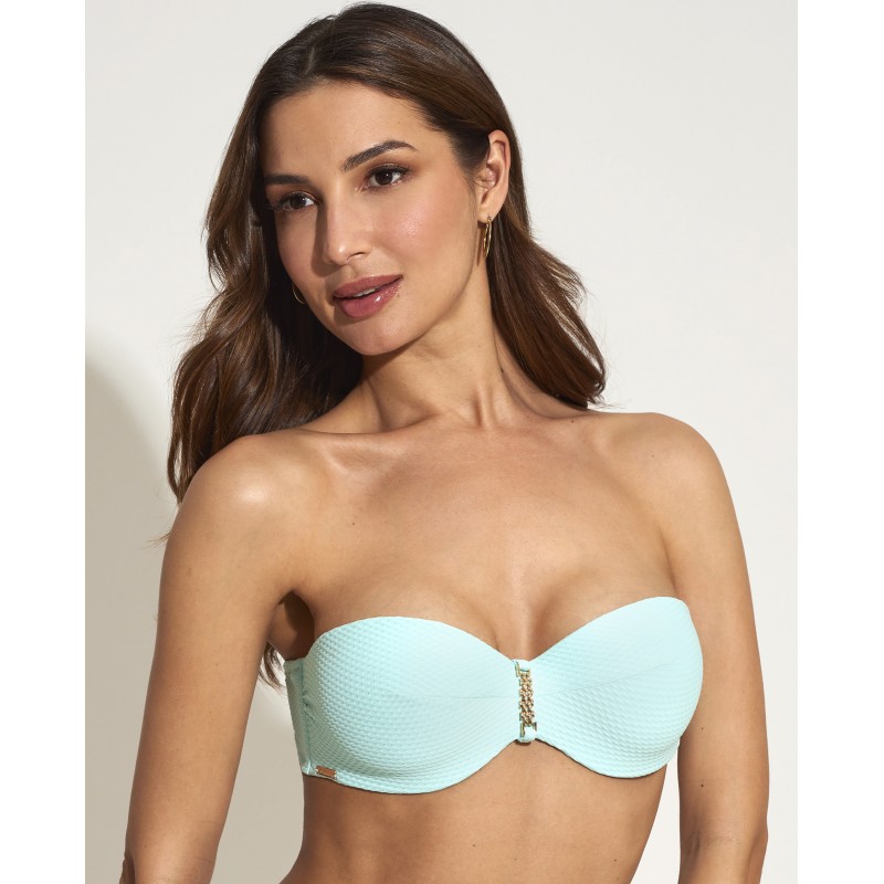 Top de biquíni bandeau com armação e copa. Com alças removíveis. Este design é simples e intemporal, o que o torna muito versátil e fácil de combinar com diferentes cuecas de biquíni.