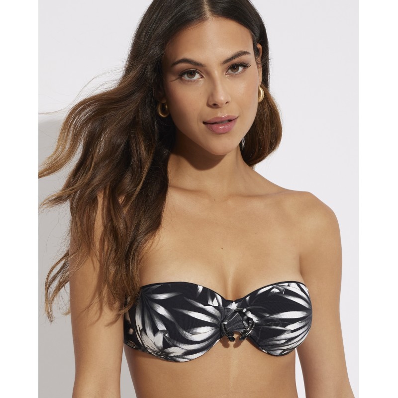 Top de biquíni bandeau com armação e copa. Com alças removíveis. Este design floral tipicamente tropical é inspirado no espírito das praias paradisíacas do Havaí. É perfeito para usar no verão ou nas férias em destinos ensolarados.