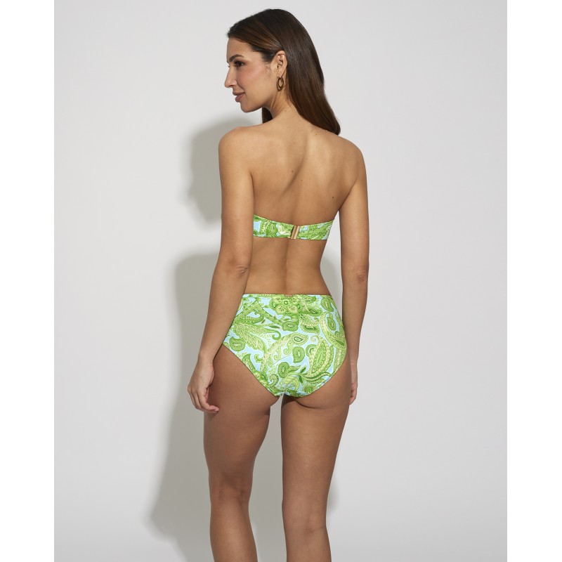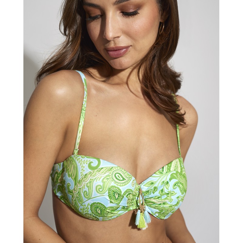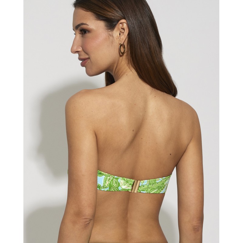 Top de biquíni bandeau com armação e copa. Com alças removíveis. O seu design étnico confere-lhe um toque de originalidade e estilo único, tornando esta peça diferente das outras. Suas cores vibrantes destacam suas curvas de forma sutil, mas impactante.