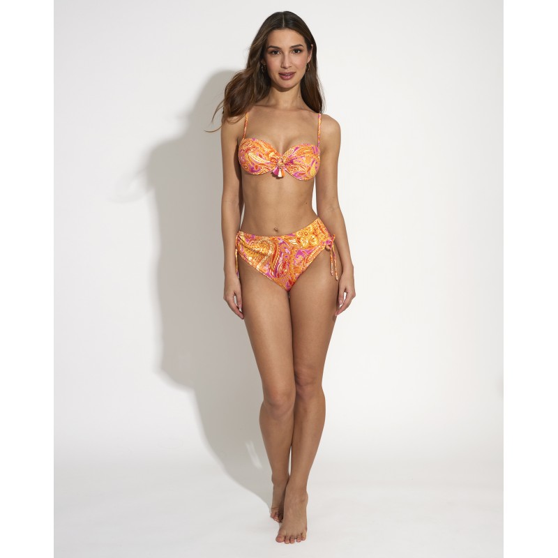 Top de biquíni bandeau com armação e copa. Com alças removíveis. O seu design étnico confere-lhe um toque de originalidade e estilo único, tornando esta peça diferente das outras. Suas cores vibrantes destacam suas curvas de forma sutil, mas impactante.