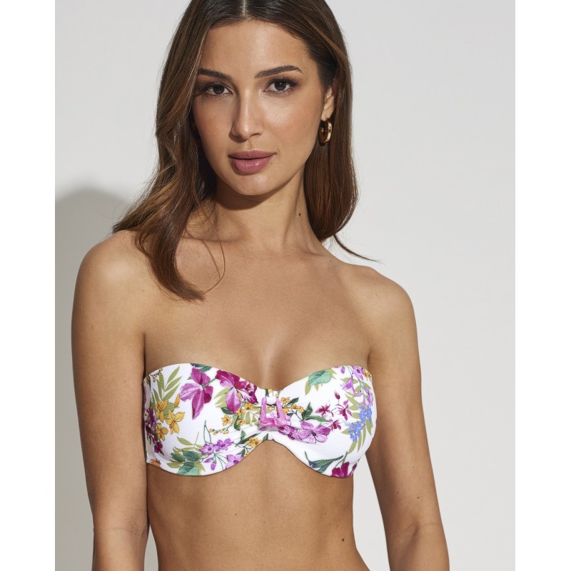 Top de biquíni bandeau com armação e copa. Este design floral e colorido é perfeito para parecer radiante e vibrante na praia ou piscina neste verão.