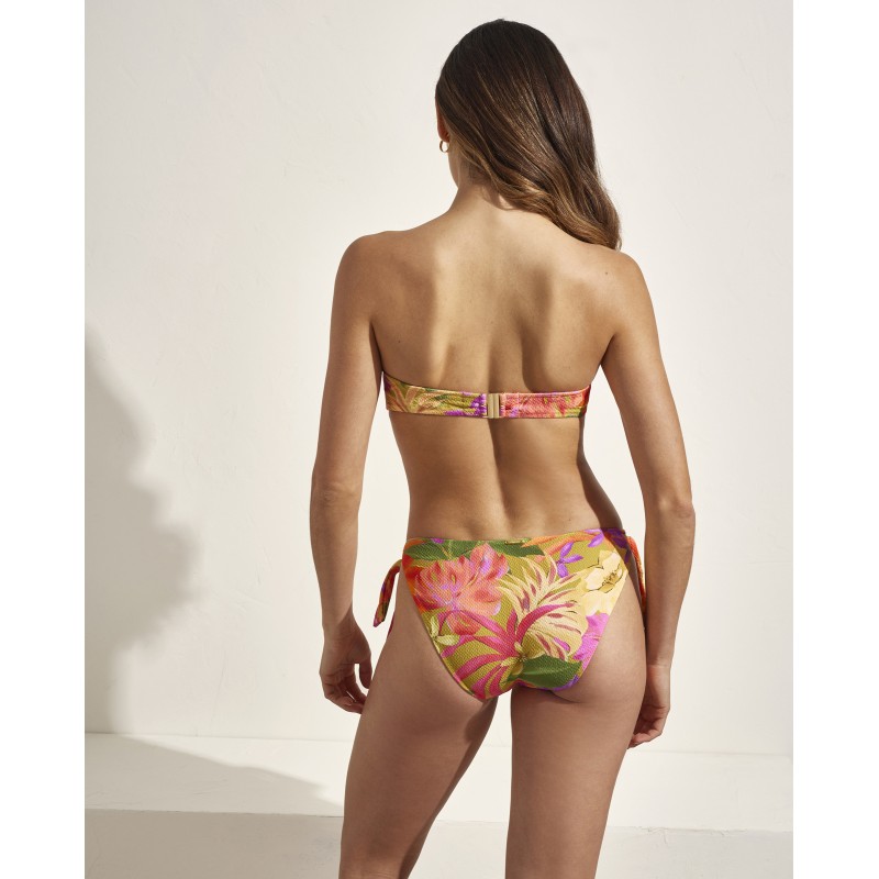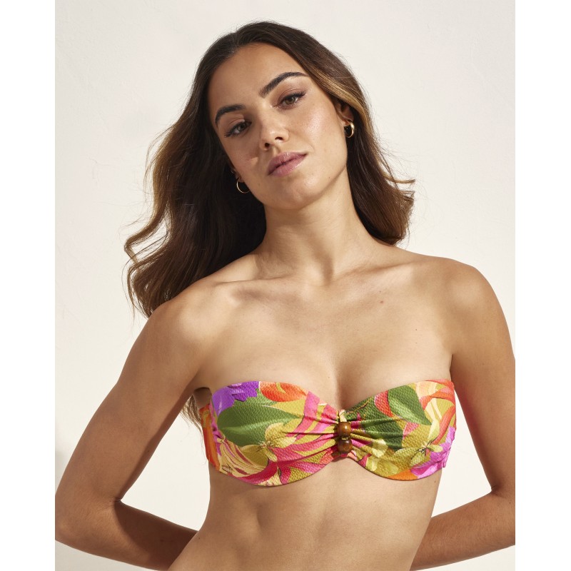 Top de biquíni estilo bandeau com armação e copas. Com alças amovíveis. Com um estampado muito tropical cheio de cores vibrantes que evocam o espírito das férias.