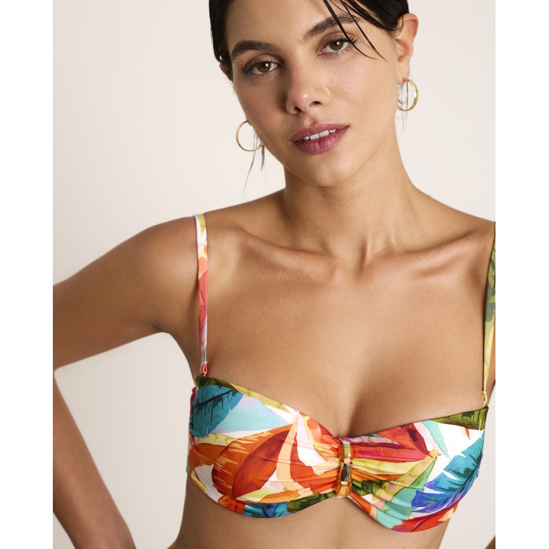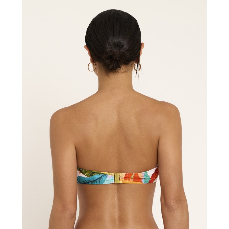 Top de biquíni estilo bandeau com armação e copa. Com alças amovíveis. Inspirado na natureza exuberante, este estampado tropical é perfeito para banhos de sol e momentos à beira-mar.