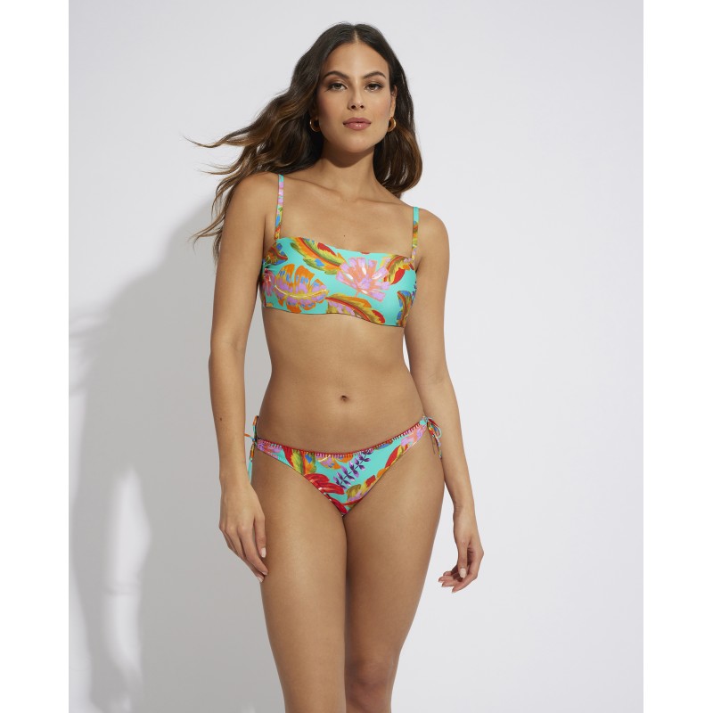 Top de biquíni bandeau com copa removível e armação. Com alças removíveis. Com uma estampa colorida e vibrante que vai dar frescor e vida aos seus dias de praia ou piscina.