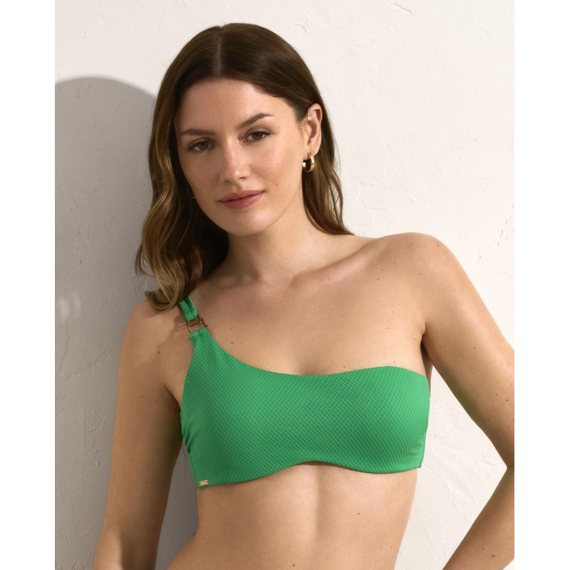 Top de biquíni estilo bandeau com copas amovíveis e aro. Com alças amovíveis. Este design versátil é perfeito para quem quer uma peça que se adapte a uma variedade de ocasiões e estilos. O seu ajuste confortável e seguro permite-lhe desfrutar de atividades aquáticas sem preocupações, seja na praia ou na piscina. É certamente uma opção clássica, prática e elegante para o verão, ideal para estar bem vestida enquanto se diverte ao sol.