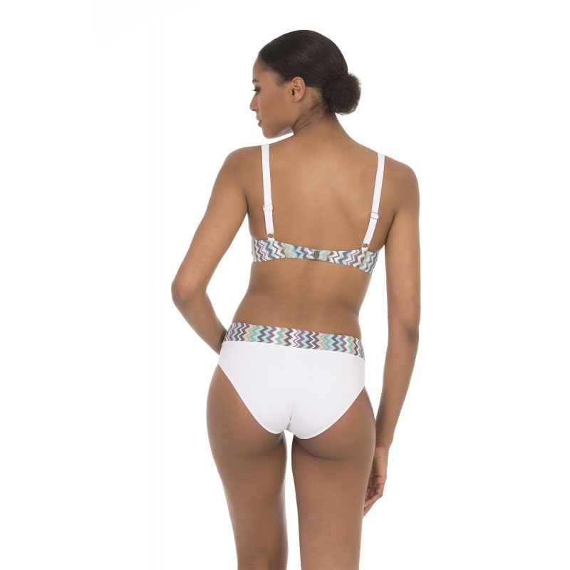 Top de bikini de capacidade sem copa. Com aro e alças largas para um suporte perfeito. Com estampado de zigzag colorido e alegre. Em branco.
