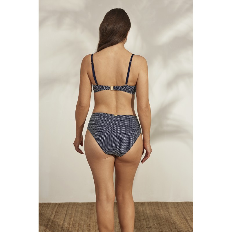 Top de biquínide capacidade sem espuma. Com aro e alças ajustáveis para garantir um ajuste perfeito. Um design simples com um detalhe muito original numa das suas tiras que a tornam uma peça única.