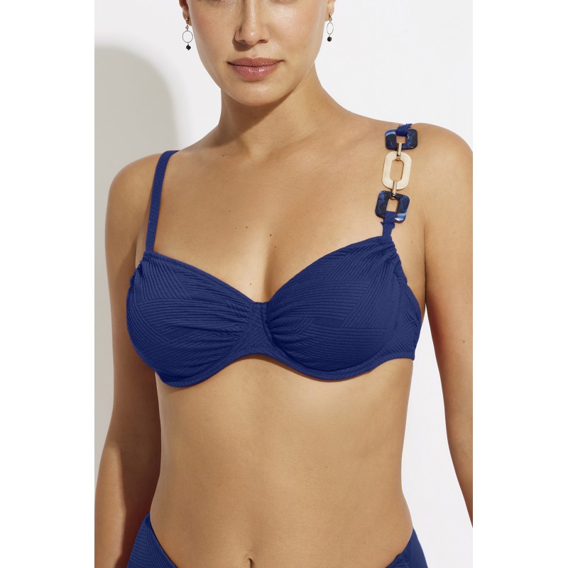 Top de bikini de capacdade sem espuma. Com aro e alças ajustáveis ​​para garantir um ajuste perfeito. Confeccionada com tecido reciclado, a peça é uma excelente alternativa entre os trajes de banho neste verão.