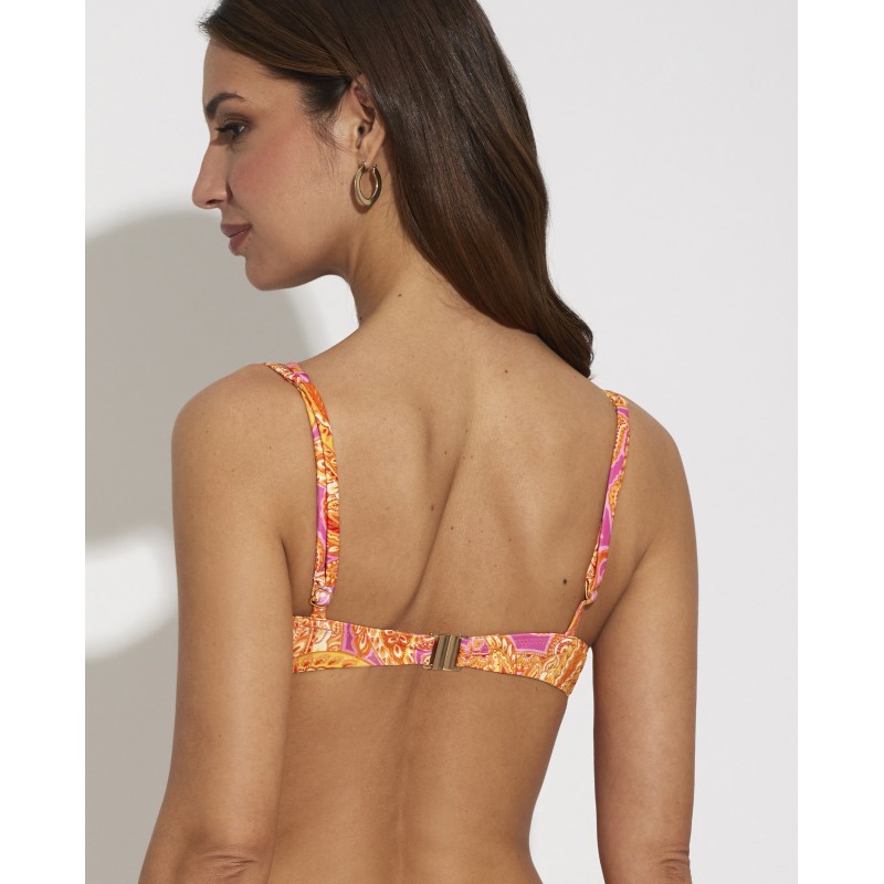 Top de biquíni com capacidade, sem acolchoamento. Com armação e alças duplas coordenadas para um suporte perfeito. O seu design étnico confere-lhe um toque de originalidade e estilo único, tornando esta peça diferente das outras. Suas cores vibrantes destacam suas curvas de forma sutil, mas impactante.