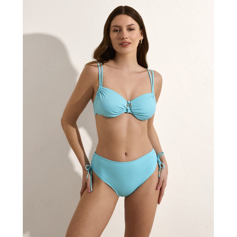 Top de biquíni sem enchimento e com cobertura total. Com alças duplas e arco a condizer para um suporte perfeito. Este design versátil é perfeito para quem quer uma peça que se adapte a uma variedade de ocasiões e estilos. O seu ajuste confortável e seguro permite-lhe desfrutar de atividades aquáticas sem preocupações, seja na praia ou na piscina. É certamente uma opção clássica, prática e elegante para o verão, ideal para estar bem vestida enquanto se diverte ao sol.