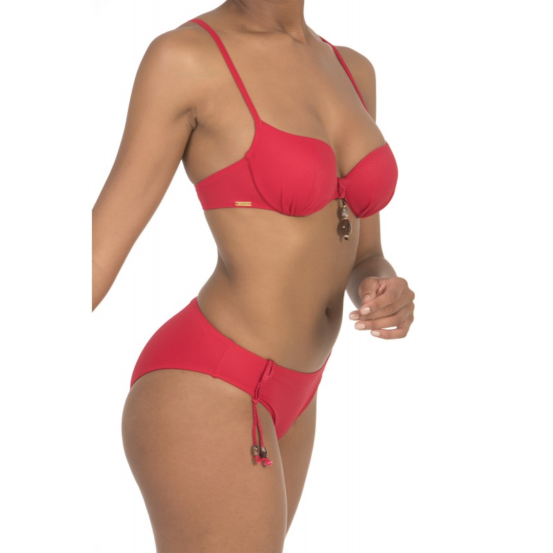 Top de bikini com aro e copa de foam. Estilo clássico com alças para um suporte perfeito e máxima comodidade. Em vermelho.
