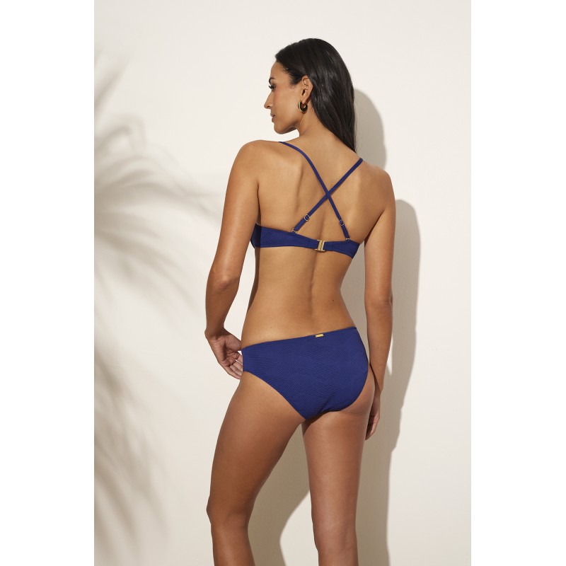 Top de bikini com aro e copa em espuma. Um design clássico com alças que oferece suporte perfeito e máximo conforto. Confeccionada com tecido reciclado, a peça é uma excelente alternativa entre os trajes de banho neste verão.