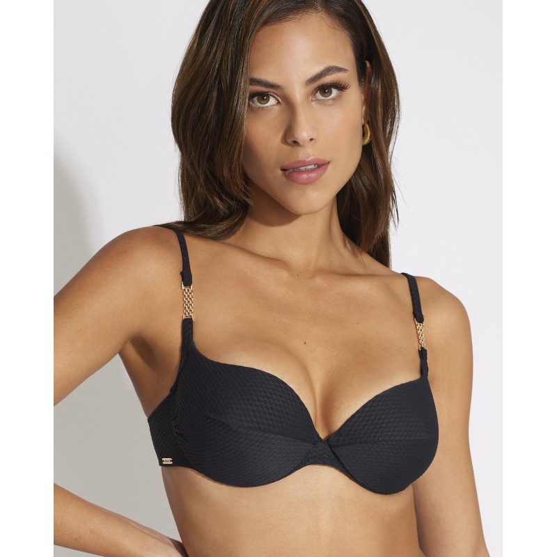 Top de biquíni com armação e copa de espuma. Proporciona suporte perfeito e máximo conforto. Este design é simples e intemporal, o que o torna muito versátil e fácil de combinar com diferentes cuecas de biquíni.