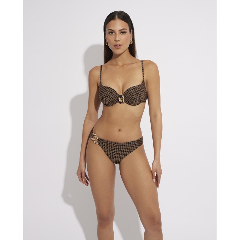 Bikini top with underwire and foam cup. A classic design with straps that provides perfect support and maximum comfort. Its elegant and retro design will give you a touch of sophistication and glamor that will highlight your unique style this summer.