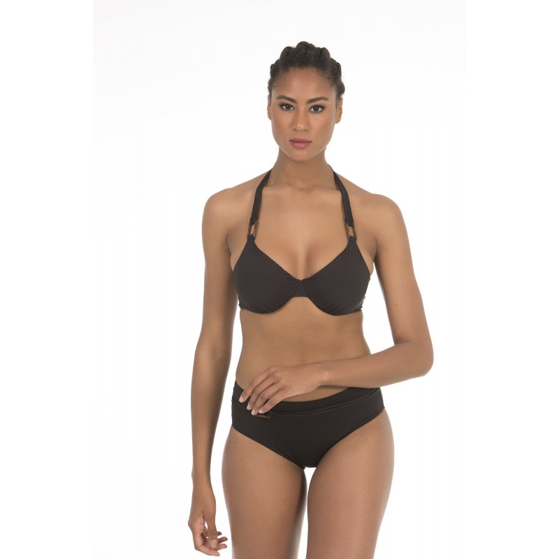 Top de bikini com aro sem copa. De corte clássico. Em preto.