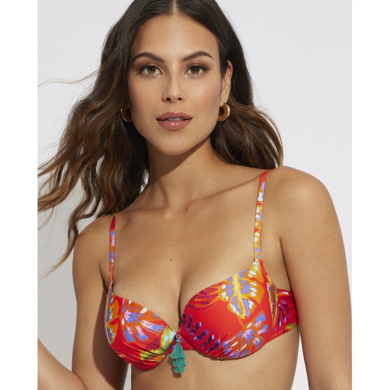 Top de biquíni semi-balconette com aro. Com uma estampa colorida e vibrante que vai dar frescor e vida aos seus dias de praia ou piscina.