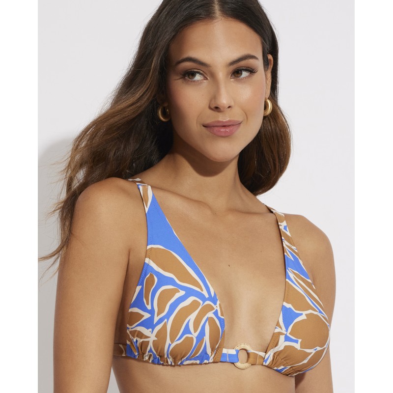 Top de biquíni com decote triangular. Com copo removível. Este design fresco e natural evoca a sensação de estar num ambiente tropical e em contacto com a natureza. É perfeito para usar neste feriado.