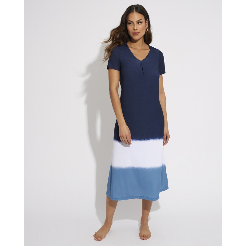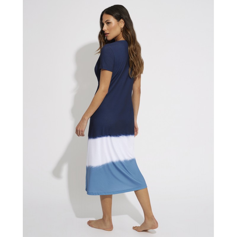 Vestido longo de corte clássico, muito confortável e com um estilo verão muito fresco em 3 tons combinados.