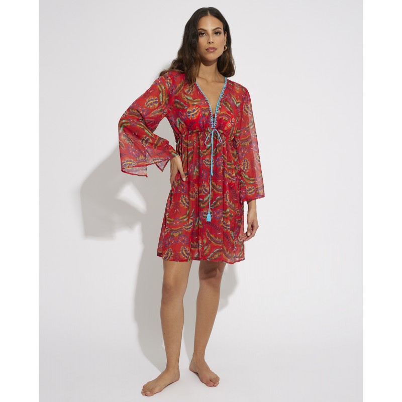 Vestido curto. Uma peça ideal para completar o seu look e combiná-lo com o seu biquíni ou maiô nesta temporada.