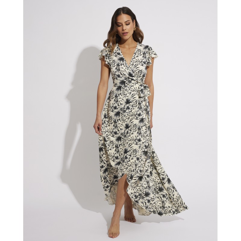 Vestido longo super bacana. Este design floral tipicamente tropical é inspirado no espírito das praias paradisíacas do Havaí. É perfeito para usar no verão ou nas férias em destinos ensolarados. Ideal para usar por cima do biquíni ou maiô.