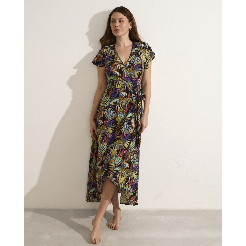 Vestido comprido com laço lateral. Com copa removível e alças multiposições. Com alças ajustáveis ​​e arco para garantir um suporte perfeito. Transporte-se para uma aventura tropical com este design que o fará sentir-se vivo e cheio de energia.