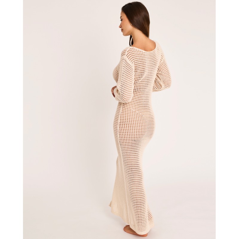 Vestido comprido de malha com mangas. Um modelo feito para o verão: fresco, confortável e fácil de usar em qualquer ocasião.
